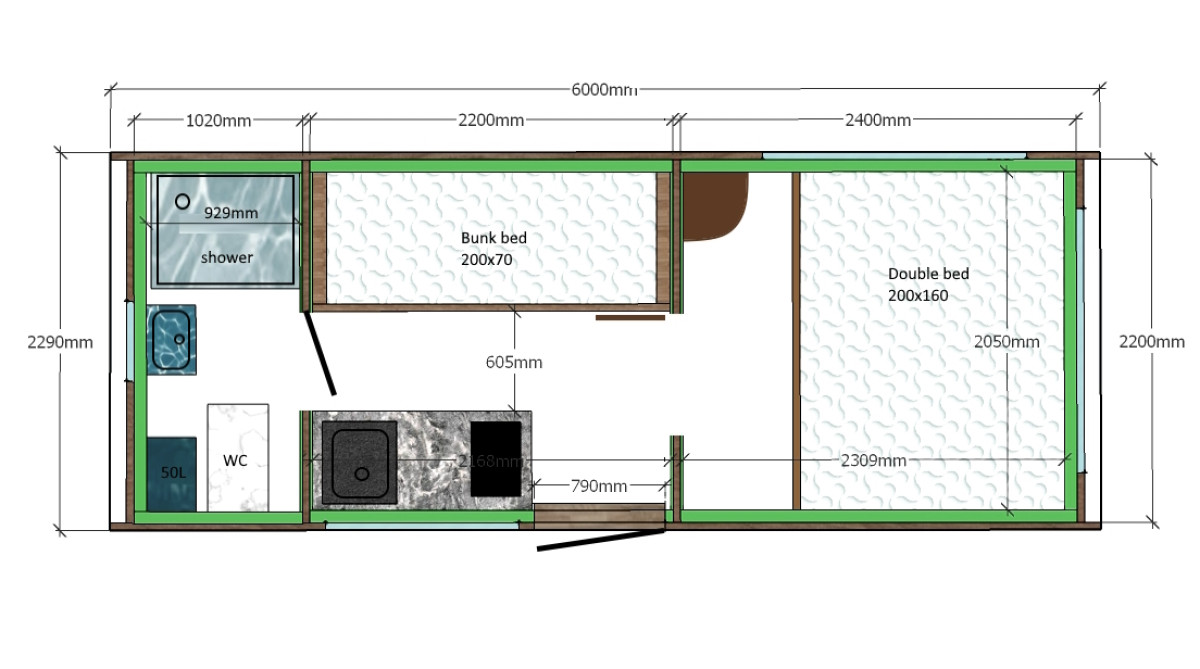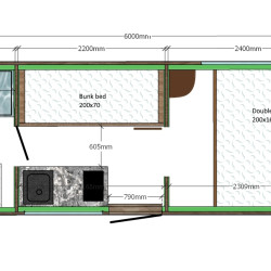 • Soveværelse: 2,40 m, Seng: 160 x 200