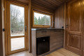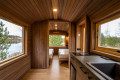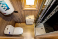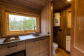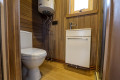 • Badeværelse med lille vask på skab, toilet, vandkoger, bruser,